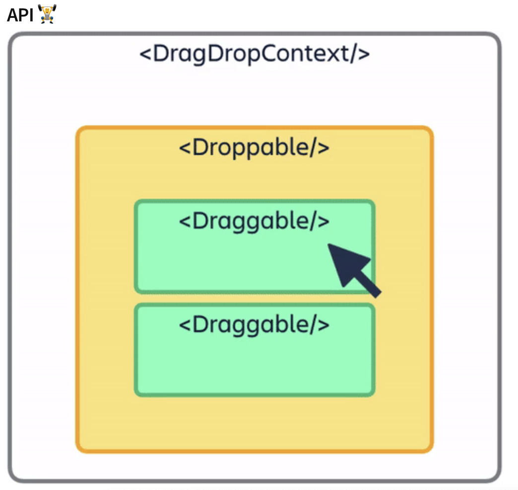 DragDropContext는 드래그 앤 드롭을 가능하게 하고자 하는 영역을 감싸주는 컨테이너이다. 자식 컴포넌트와 드래그를 끝낸 시점에 불려지는 함수인 onDragEnd라는 prop이 필수로 들어간다.